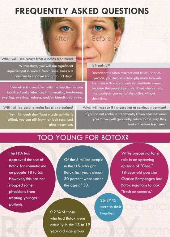 BOTOX® Cosmetic is the only approved treatment to temporarily improve the appearance of both moderate to severe frown lines between the brows and crow’s feet lines in adults. You may begin to notice results within 24 to 48 hours for moderate to severe frown lines, with results lasting up to 4 months.